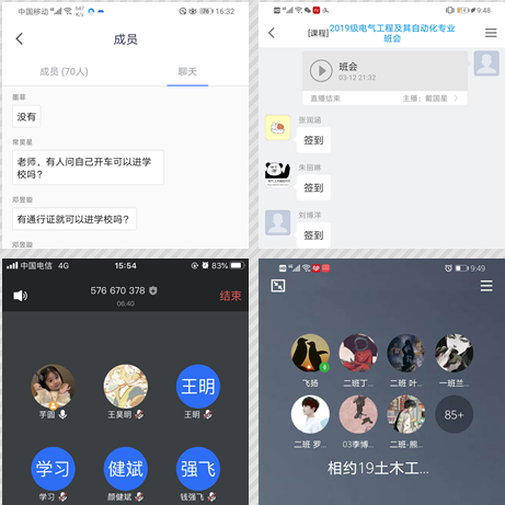 按照学院班会部署,各专业利用腾讯会议、腾讯课堂、学习通课程、QQ视频会议等会议平台召开班会。各班主任先认真听了同学们各自在家学习生活情况介绍,对同学们的表现给与了充分的肯定。随后,他们传达了党和国家关于疫情防控的形势和下一阶段的任务,传达了学校党委和行政对同学们的关心关爱,对照学校各项通知要求进行了工作布置。要求同学们进行正面的宣传,不信谣,不传谣,根据新冠肺炎防护指南切实做好自我防护,积极投身体育锻炼强健体魄,以饱满的身心状态参与线上教学,虽然开学时间未定,但同学们还需做好开学的各项准备,号召同学们在学习之余主动分担家务,在所住区域参与志愿服务,积极投身为国为民服务的第一线。两个毕业专业还特别对毕业设计、毕业预警、考研复试、就业等事项进行了认真指导。
