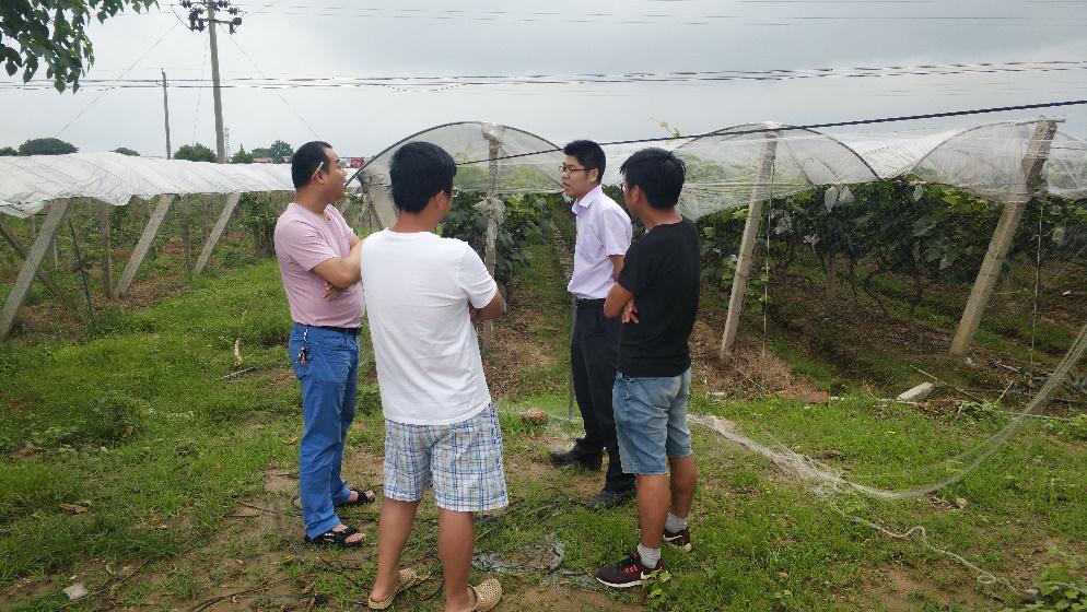实践团队成员在谭理武老师、邓磊磊老师的带领下来到实地进行考察,与庄园农户进行了深入交流,了解了农庄种植园的种植品种、地形地貌和发展经营模式,并进行了设备安装的初步假设规划。