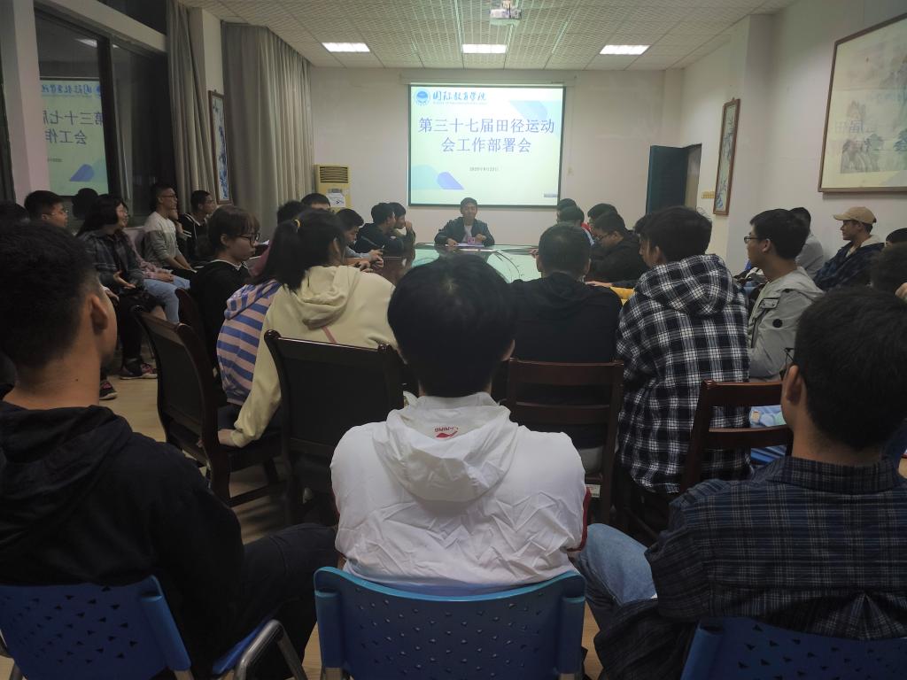 为全面贯彻党的教育方针,落实“立德树人”根本任务,树立“健康第一”的指导思想,推动学院体育活动的开展,国际教育学院于9月23日晚在北A210召开了第三十七届田径运动会工作部署会,全体19级运动员参加了本次会议,会议由辅导员赖卓主持。