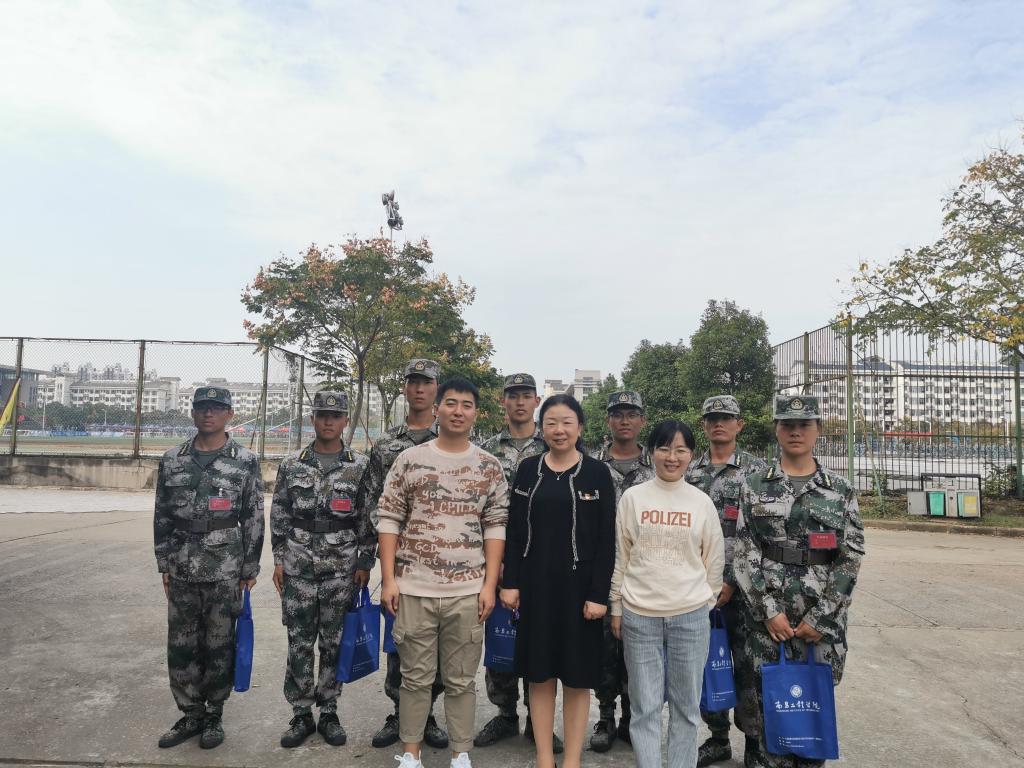 10月13日下午,学院党委副书记赵薇以及全体辅导员一行来到体育馆前军训现场,慰问我院承担军训任务的教官。