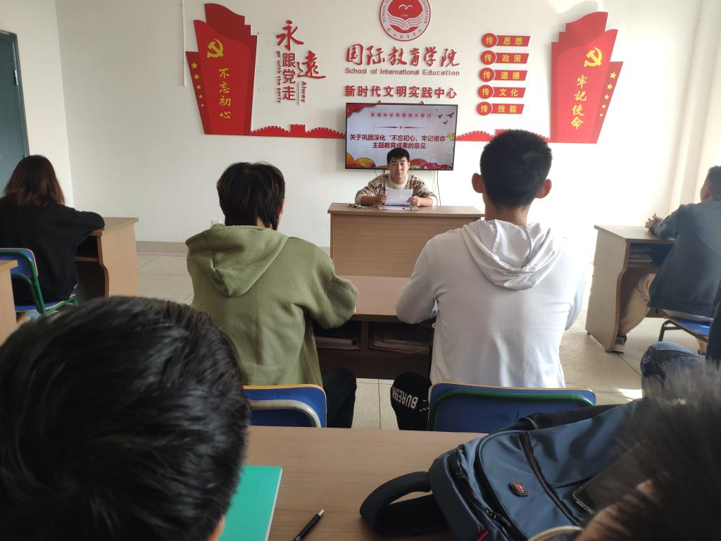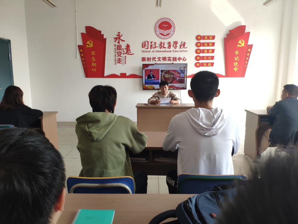 为更好地提高学生党员理论水平,进一步统一思想、坚定信心、凝聚力量,10月19日下午,国际教育学院学生第一、第二党支部在新时代文明时间中心开展《关于巩固深化“不忘初心、牢记使命”主题教育成果的意见》(以下简称《意见》)和习近平总书记在深圳经济特区建立40周年重要讲话学习活动,全体学生党员参加,学习由学生第二党支部书记赖卓领学。