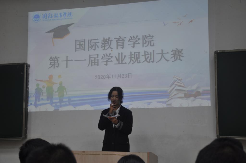 为引导大一新生更好规划大学四年的学业蓝图,树立学业规划理念,明确学业发展目标,国际教育学院于11月23日晚在北C103举办第十一届学业规划大赛。此次比赛共有14名选手参加,学院党政办主任戴国星、辅导员赖卓、杜嫣艳,17土木工程班主任周宇以及学生会执行主席陶钧担任此次比赛的评委,全体大一新生作为观众观摩了本次比赛。