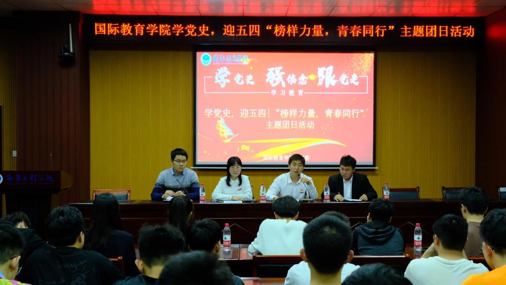 为了引导广大青年学习党史,在五四青年节到来之际,传播青年声音,激发青春力量。4月29日晚,国际教育学院团委在大学生活动中心B100举行了学党史,迎五四“榜样力量,青春同行”主题团日活动。学院团委副书记赖卓,全体辅导员和各团支部代表出席本次活动,会议由赖卓主持。