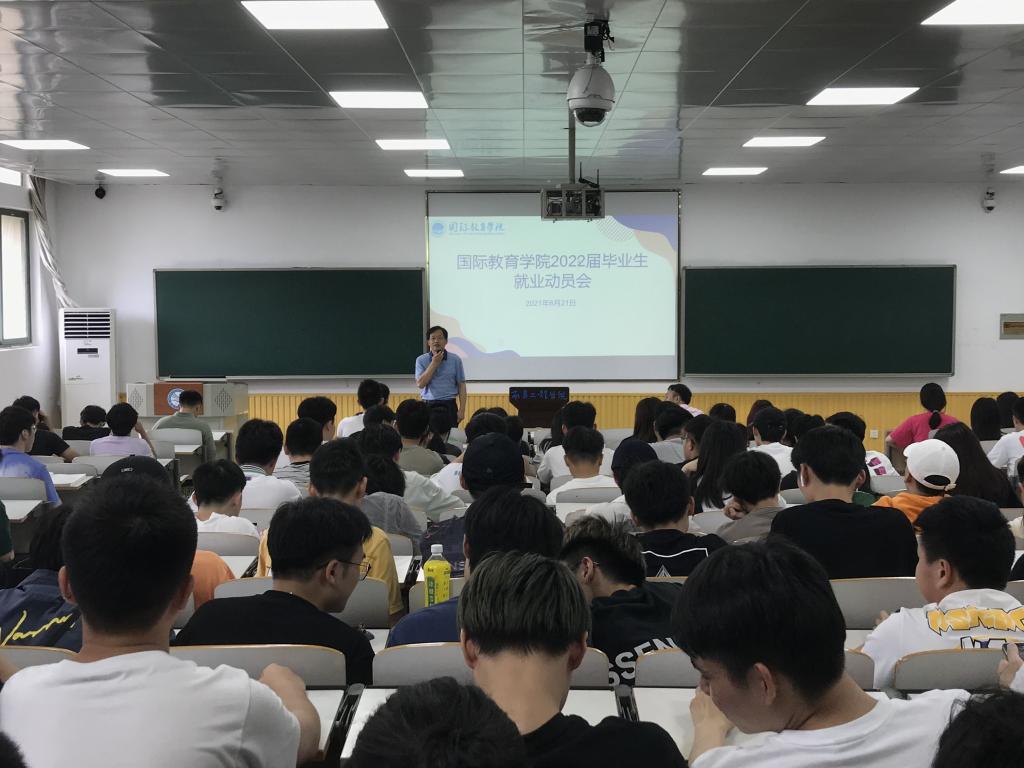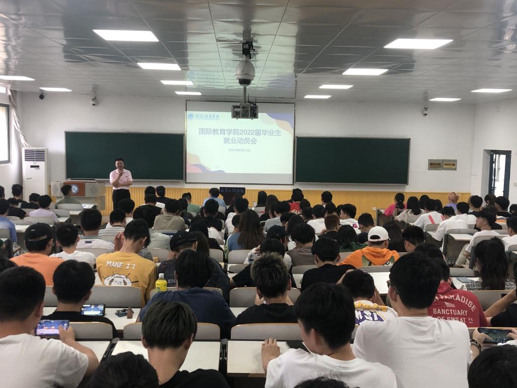 为贯彻落实学校有关毕业生就业创业工作的要求,让学生尽早了解当前就业形势,国际教育学院于6月21日举行了2022届毕业生就业动员会。国际教育学院院长王自强、招生就业处副处长黄春文、燕兴国际教育学校校长张小燕、全体辅导员和毕业班班主任及2022届毕业生参加本次会议,会议由学院党委副书记赵薇主持。