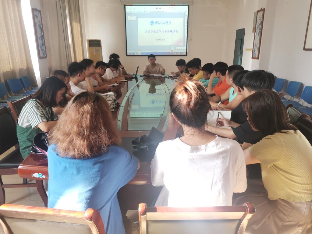 为进一步推进新学期学生干部事务的管理,详细讨论团委学生会各部门职能的调整问题,9月1日下午,国际教育学院在北A210召开了本学期团委学生会学生干部座谈会。学院团委副书记赖卓,辅导员杜嫣艳、闫方超和各部门负责人参加了会议。