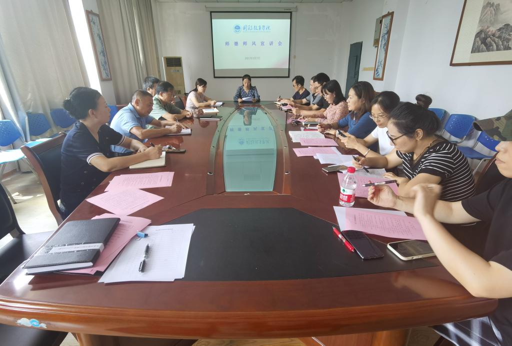 在即将庆祝我国第37个教师节之际,为进一步弘扬师德师风主旋律,彰显和传递立德树人的正能量,用身边人,身边事教育广大教师,充分发挥优秀教师的示范引领作用。9月7日下午,国际教育学院在北A210会议室举办了师德师风先进典型事迹报告会,由2021年度学校优秀教师获得者郭一帆老师主讲,学院全体教师到场聆听。