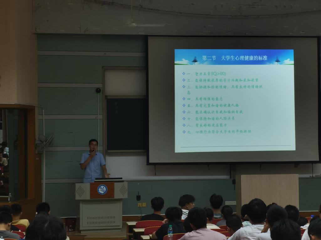 为提高同学们的心理健康意识,掌握一些大学生心理健康基本知识,国际教育学院于9月17日晚在北C103开展了新生入学教育之大学生心理健康教育讲座,讲座由辅导员闫方超主讲,2021级全体学生参加本次讲座。