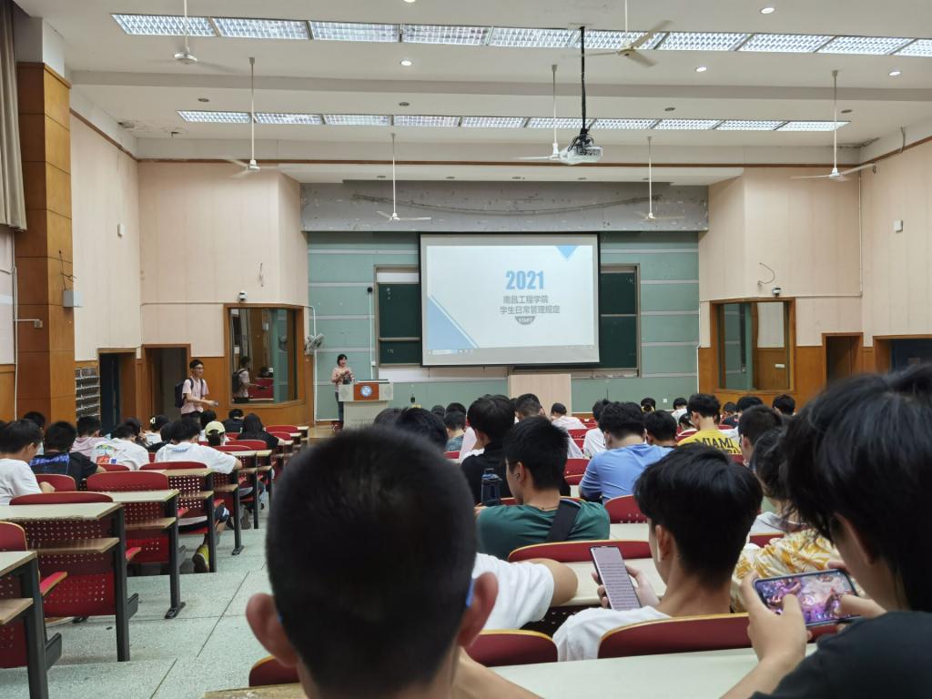 金秋九月,丹桂飘香。为帮助新生走好成长成才的第一步,养成良好学风和学习生活习惯,尽快适应大学校园生活,国际教育学院于9月16日晚在北C104举办了2021级新生入学教育之学生日常管理,由学院辅导员杜嫣艳主持并讲座。