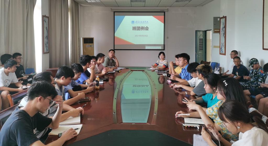 为深入推进国际教育学院工作的开展,加强学院的学风建设,引导学生今后的学习和工作方向,9月28日国际教育学院在北A210召开了2021年秋季学期第一次班团例会。国际教育学院学工办副主任赖卓,辅导员杜嫣艳、闫方超及各班班长、团支书参与本次例会,例会由赖卓主持。