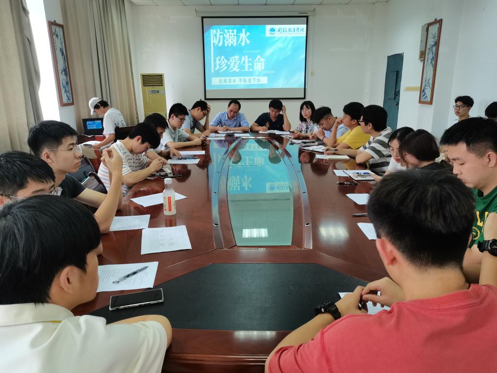 随着天气逐渐转热,防溺水安全工作已成为学院安全教育的重点,为预防和杜绝溺水事故的发生,国际教育学院于6月10日在教学北楼A210开展了“珍爱生命,预防溺水”的安全教育主题活动。学院党委副书记戴国星和全体辅导员参加,各班班委到会,会议由赖卓主持。