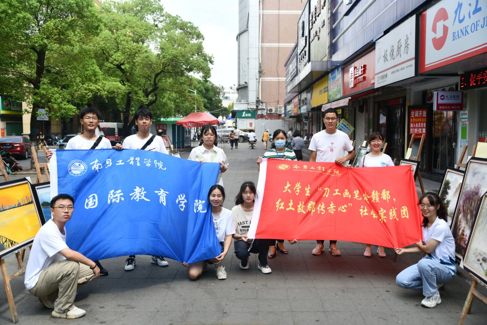 2022年8月28日,南昌工程学院国际教育学院暑期社会实践团队携带团队成员绘制的20余幅江西山水刀画作品前往南昌江大南路社区进行展览,宣传江西山水,弘扬红色故事。