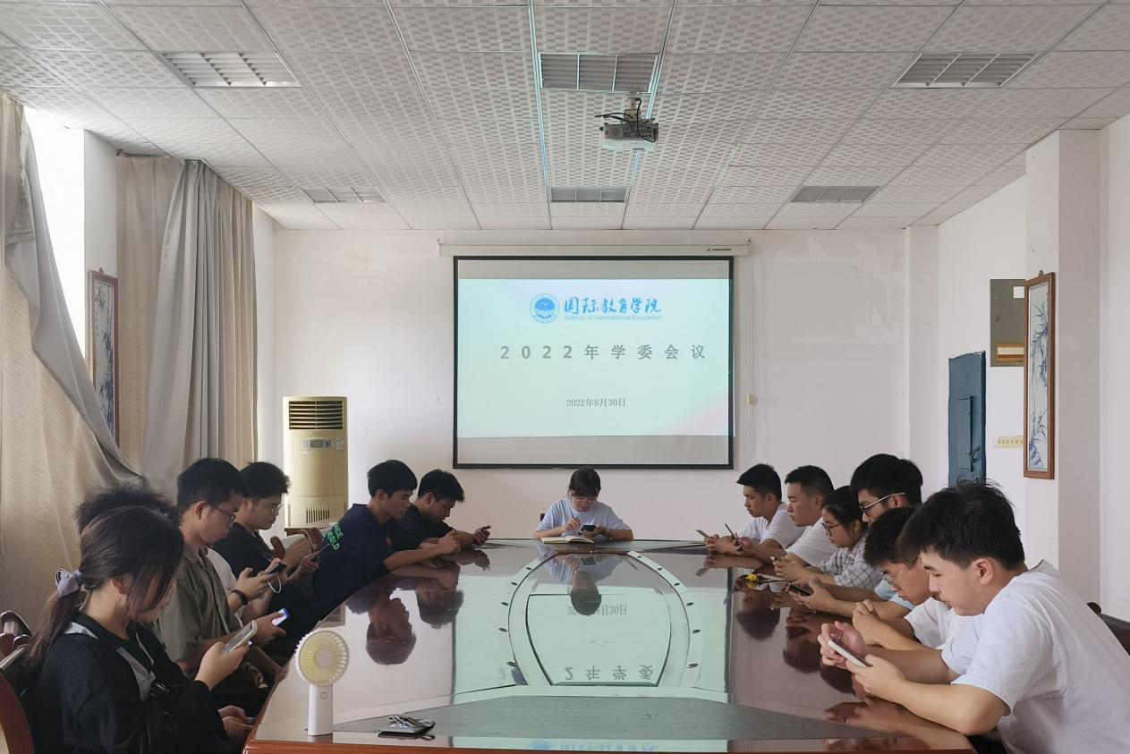 为加强学院学风建设,做好评奖评优工作,国际教育学院于2022年8月30日在北大教学楼A210召开学委工作会议,各班学委,学生会学习部成员出席,辅导员杜嫣艳主持。