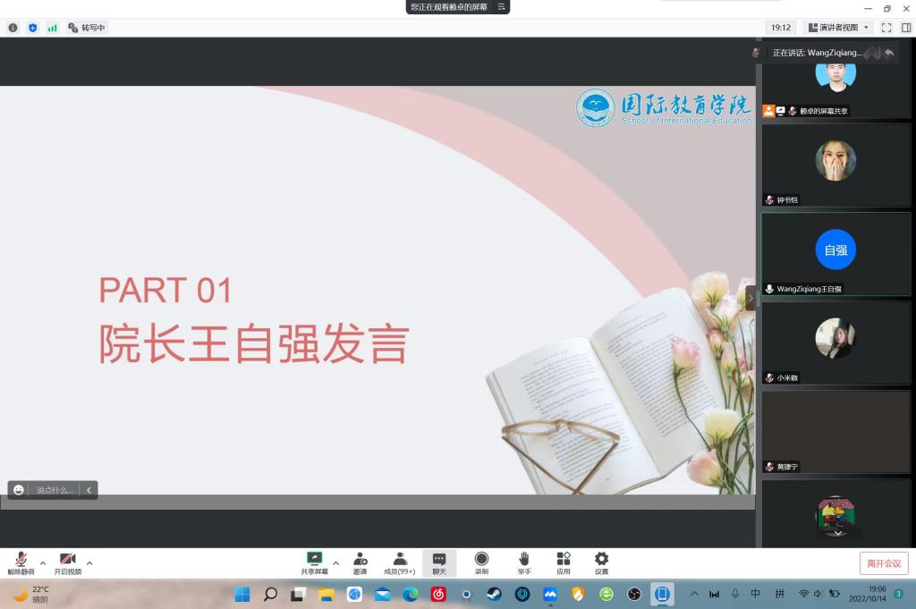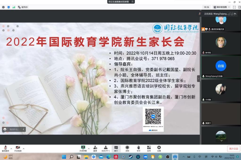 为贯彻落实习近平总书记关于教育的重要论述,有效增进家校沟通,进一步营造学校、家庭、社会“三位一体、家校共育”的良好氛围,助力学生全面成长成才,南昌工程学院国际教育学院于10月14日晚在腾讯会议上召开了“家校互动 协同育人”为主题的“云上”家长座谈会,国际教育学院领导班子成员、全体辅导员和班主任及300余名学生家长参加会议,会议由学工办副主任赖卓主持。
