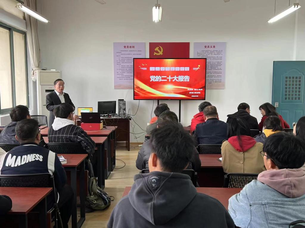 11月15日下午,校党委委员、副校长樊后保在明理楼A201党员活动室作“学习贯彻党的二十大精神”主题宣讲,樊后保所联系的班级及国际教育学院的教师到场聆听。