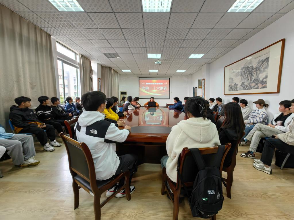 为了深入学习宣传贯彻党的二十大精神,2022年11月23日,国际教育学院于教学北A210开展党的二十大精神宣讲,此次宣讲由国际教育学院团委副书记赖卓主讲,团员青年代表共计40余人参加。
