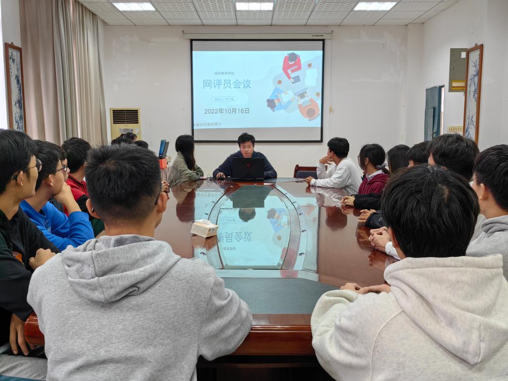 为营造良好的网络舆论环境,国际教育学院于2022年10月16日在教学北大楼A210举行2022下半年网评员培训会议。全体网评员参加本次会议,会议由学生兼职团委副书记叶子俊主持。