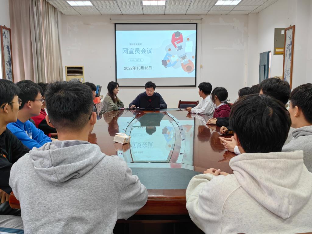 为进一步做好网络宣传工作,提高宣传质量和水平,营造积极、健康、向上的网络氛围。国际教育学院于2022年10月16日在教学北大楼A210举行2022下半年网宣员培训会议,全体网宣员参加本次会议,会议由学生兼职团委副书记叶子俊主持。