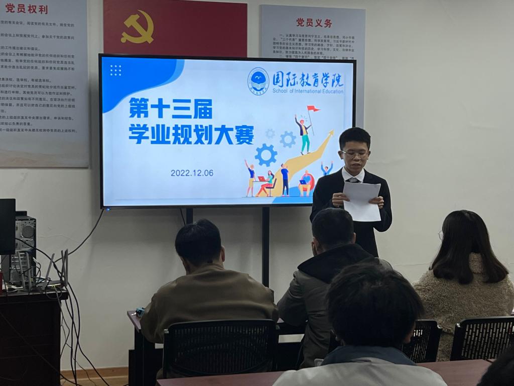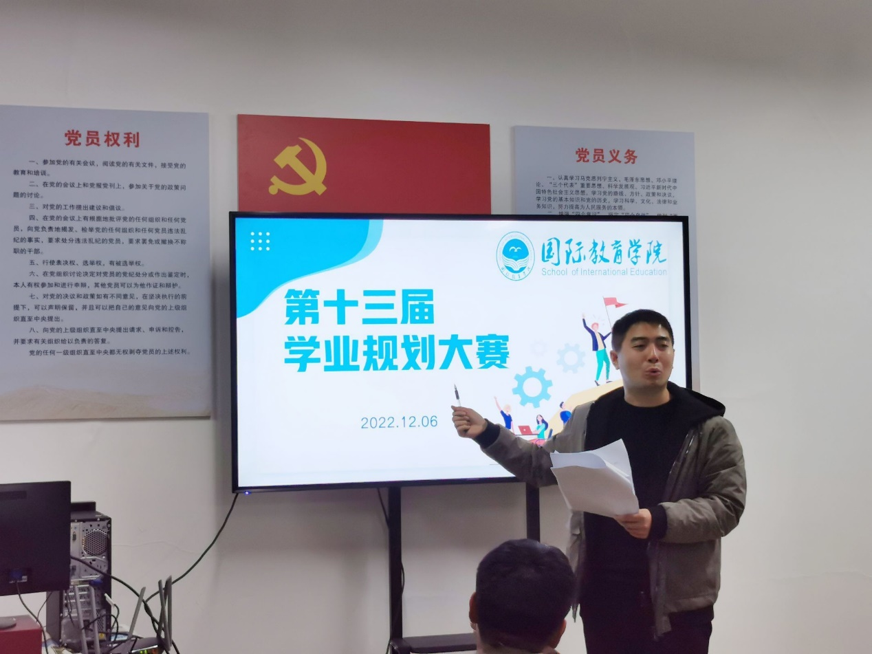 为帮助2022级新生树立合理的学业生涯规划意识,学会以科学的方法规划自己的学业,国际教育学院于12月6日在北A201举办学业规划大赛。此次比赛共有13名选手参加,学院团委副书记赖卓、辅导员杜嫣艳、第十二届校学业规划大赛一等奖得主赵敏、院学生会主席团成员李思伟担任此次比赛评委,2022级新生作为观众观摩了本次比赛。