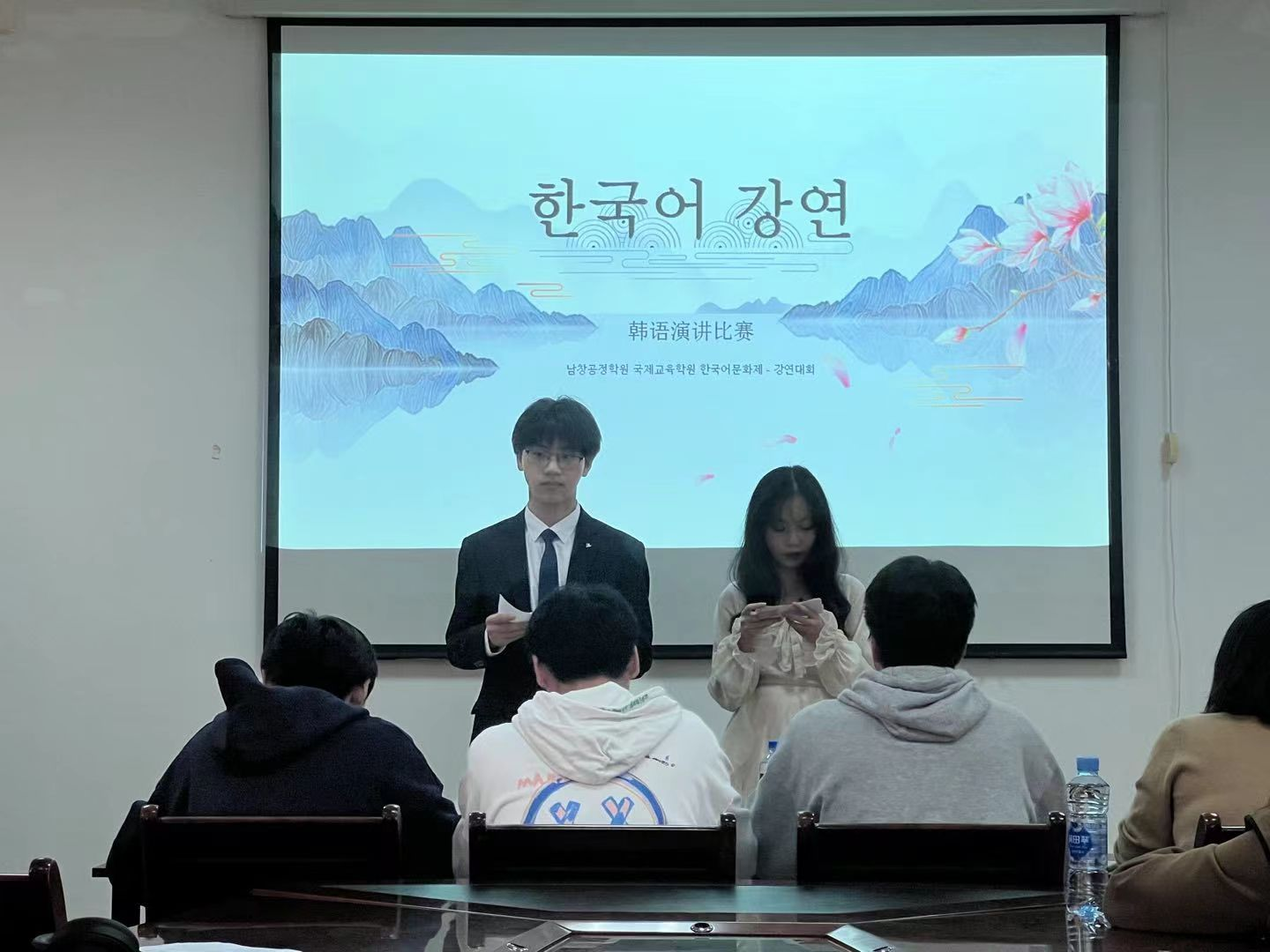 为丰富同学们的校园文化生活,进一步提高同学们的跨文化交际意识和韩语应用能力,4月26日,南昌工程学院第十一届韩语文化节演讲大赛在明理楼A210顺利举行。国际教育学院韩语授课教师陈阳,院学生会文体部部长欧阳钧宇,院学生会纪检部部长喻文博,20电气工程及其自动化(中韩)班学生梁骏杰担任本次比赛的评委,来自全校的十一位选手参与此次比赛。