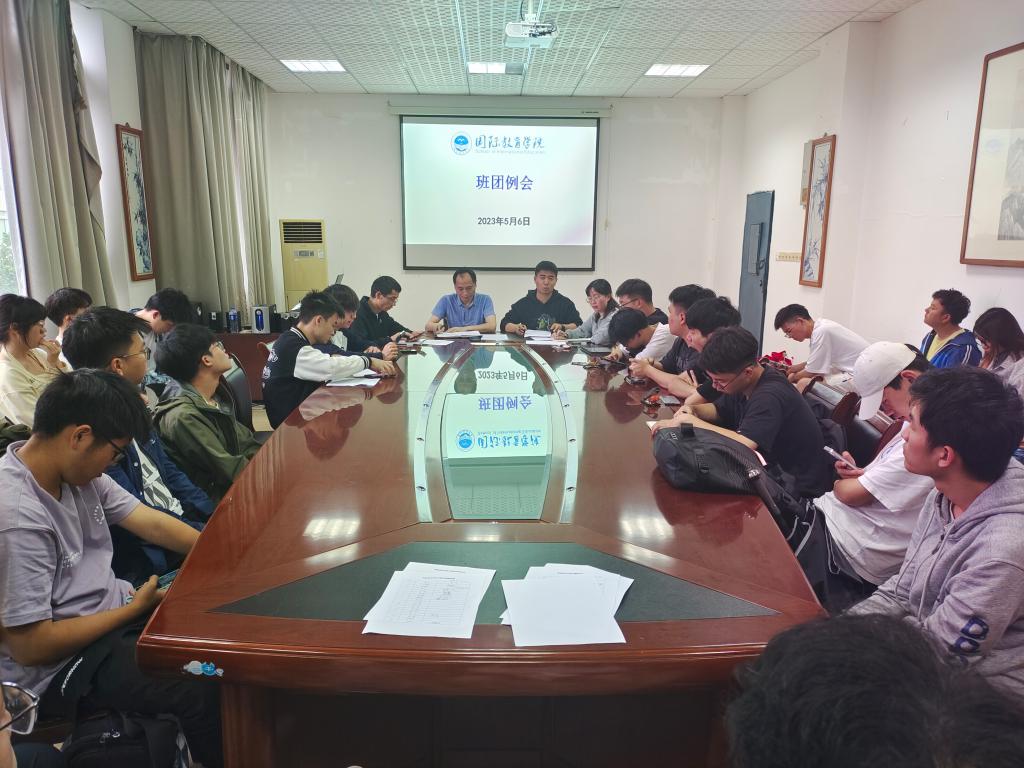 为深入推进国际教育学院工作的开展,加强学院学风建设,5月6日中午,国际教育学院在北A210召开了2023年第三次班团例会。学院党委副书记戴国星、全体辅导员、各班班长、团支书出席本次例会,例会由辅导员杜嫣艳主持。