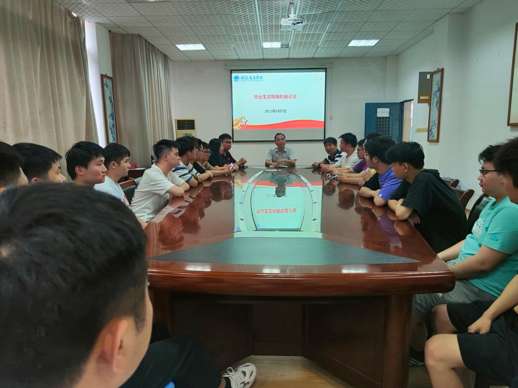 为进一步做好毕业生文明离校工作,6月1日下午,国际教育学院在北A210召开毕业生文明离校座谈会。学院党委副书记戴国星和全体辅导员出席了座谈会,各毕业班主要班干部及毕业生党员等参加了会议。