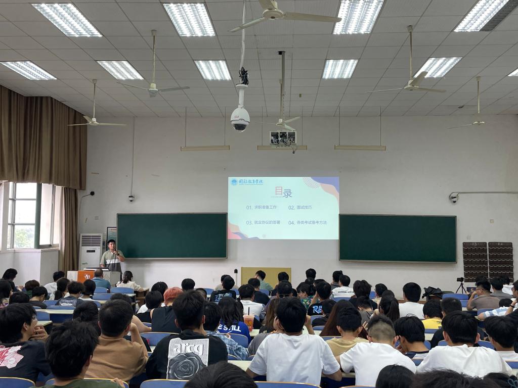 会上,院领导介绍了国际教育学院近年来的就业情况,并做了动员讲话。指出毕业生要培养理性的就业心态,树立正确的就业观,先就业再择业,合理调整目标,正确认识自己,精准把握方向;要做好就业的充分准备,完善简历,不断提高竞争能力,积极参与线上、线下就业指导与相关活动,多途径了解就业信息,抓住更多就业机会;要拓宽视野,积极在新兴领域中积极寻求就业机会。之后,学工办团委负责人从求职准备工作,面试技巧,就业相关材料的准备以及各类考试备考方法四个方面分析了当前就业形势和我校近年来就业工作状况,详细帮助同学们认清形势、做好规划、建立信心。