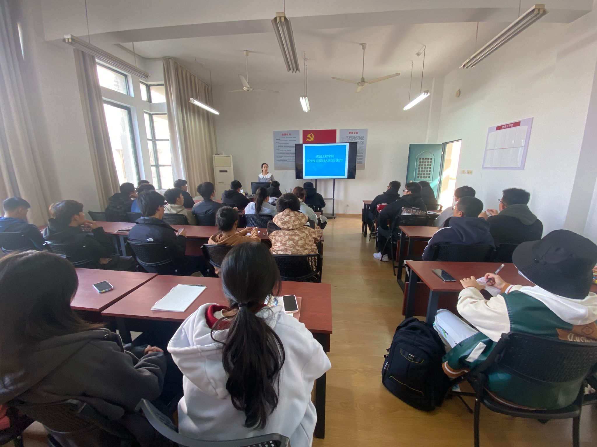 11月14日,由招生就业处主办,国际教育学院团委承办的第25期就业创业大讲堂活动在北A201开展,南昌工程学院人文与艺术学院学工办主任、国家高级职业指导师、高校就业指导师丁蓓蒂主讲,2023级各班新生代表、团学干部代表共计50余人参加。