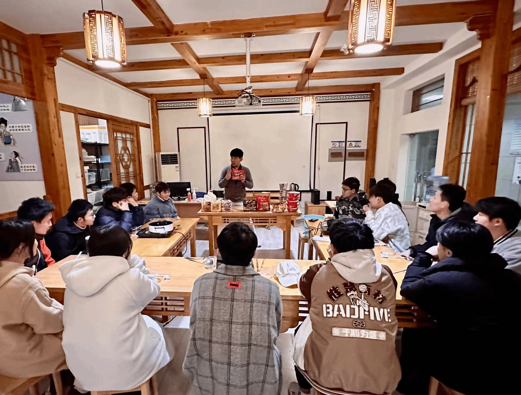 为活跃学生课余文化生活,促进学生对中韩饮食文化的理解,2023 年 11 月30 日,国际教育学院韩语教研室在教育技术楼 A404 开展了中韩饮食文化体验活动。
