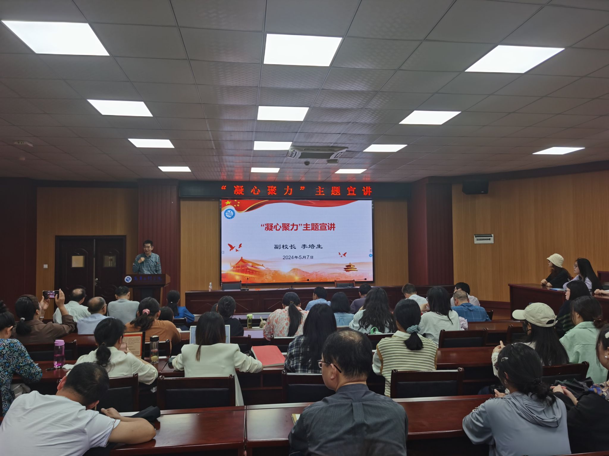 5月7日下午,副校长李培生在大学生活动中心B100开展题为《凝心聚力》宣讲,后勤保障处、外国语学院和国际教育学院100余名师生聆听了此次宣讲。