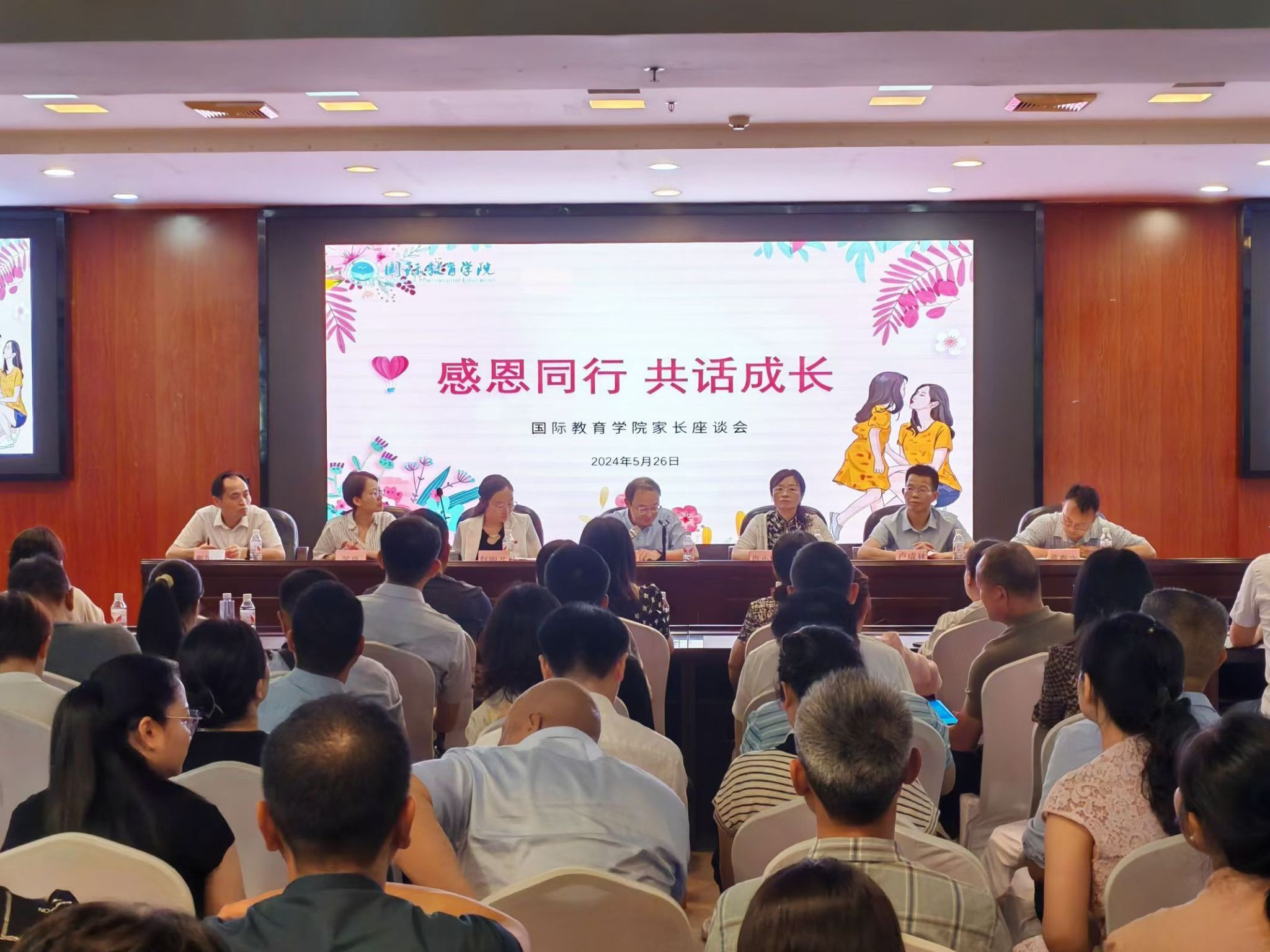 为了进一步增进家校间的育人共识,并加强彼此间的紧密联系,国际教育学院精心策划并于2024年5月26日在悦岸酒店四楼会议室隆重举行了家长座谈会。此次会议汇聚了团委、教务处、学工处、招就处等部门的领导、学院党政班子成员、班主任、辅导员以及特邀的200余位学生家长。