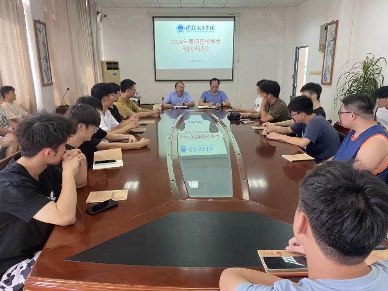 8月3日,国际教育学院在明理楼210举行暑期留校考研学生慰问会。学院党委书记章蔚中、党委副书记戴国星和全体辅导员出席会议,2021级全体留校学生参加会议,会议由戴国星主持。