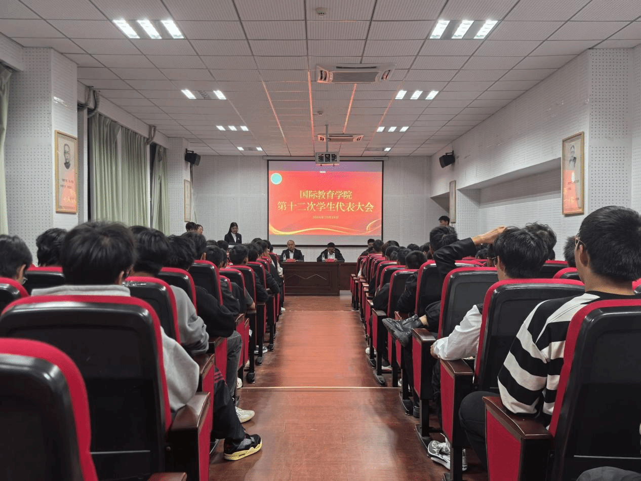 10月24日,国际教育学院第十二次学生代表大会在大学生活动中心A205会议室顺利召开。校学生会、学院团委和学生会相关负责人和学生代表等100余人代表参加此次会议。