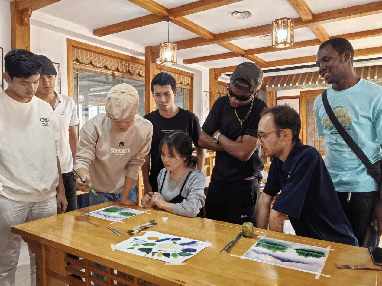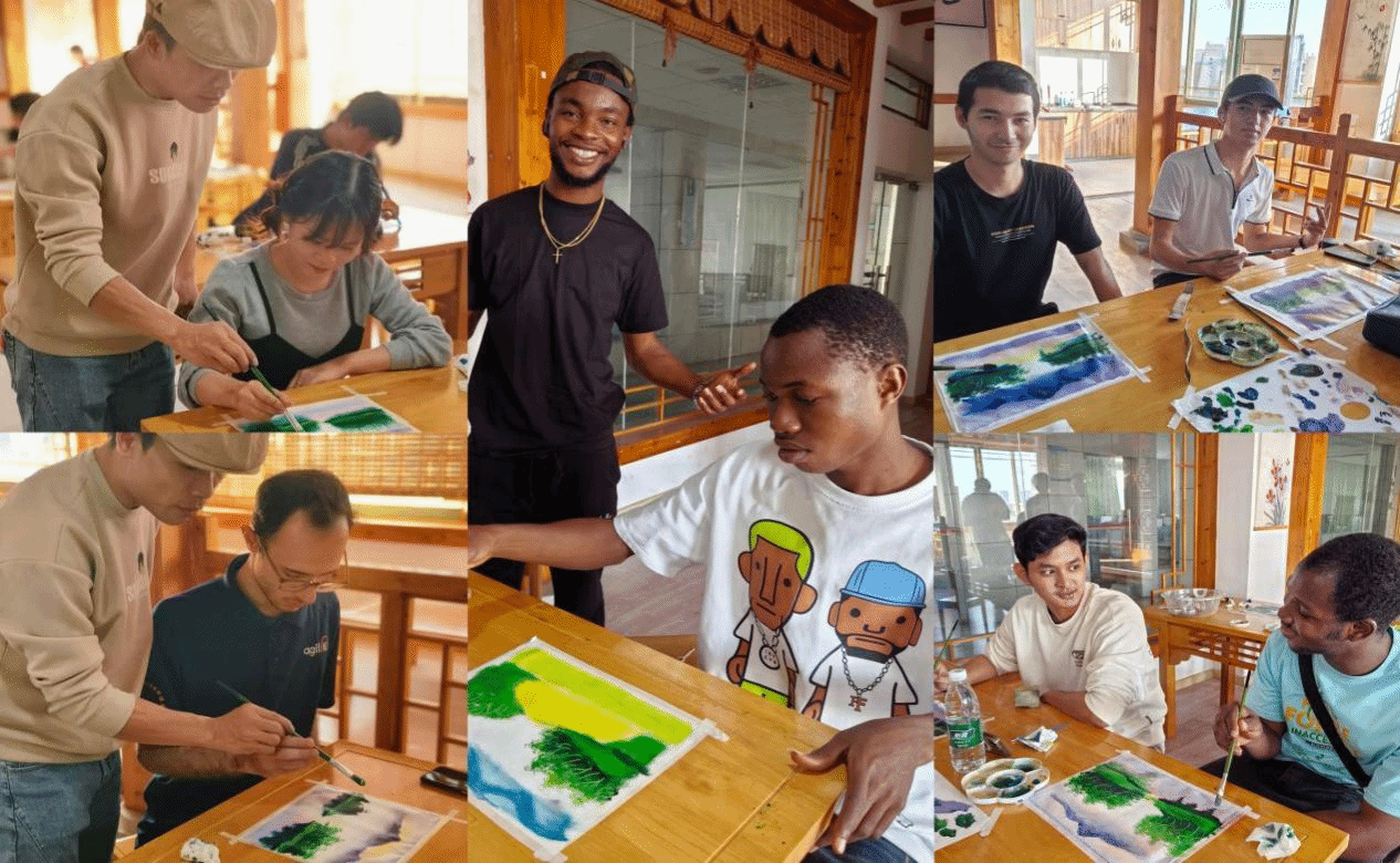 课程中,指导老师深入浅出地介绍了刀画的起源、发展以及特色技法,并亲自示范了刀画的制作过程。在老师的悉心指导和中国同学们的帮助下,留学生们成功完成了自己的首幅刀画作品,体验到了传统艺术的魅力。