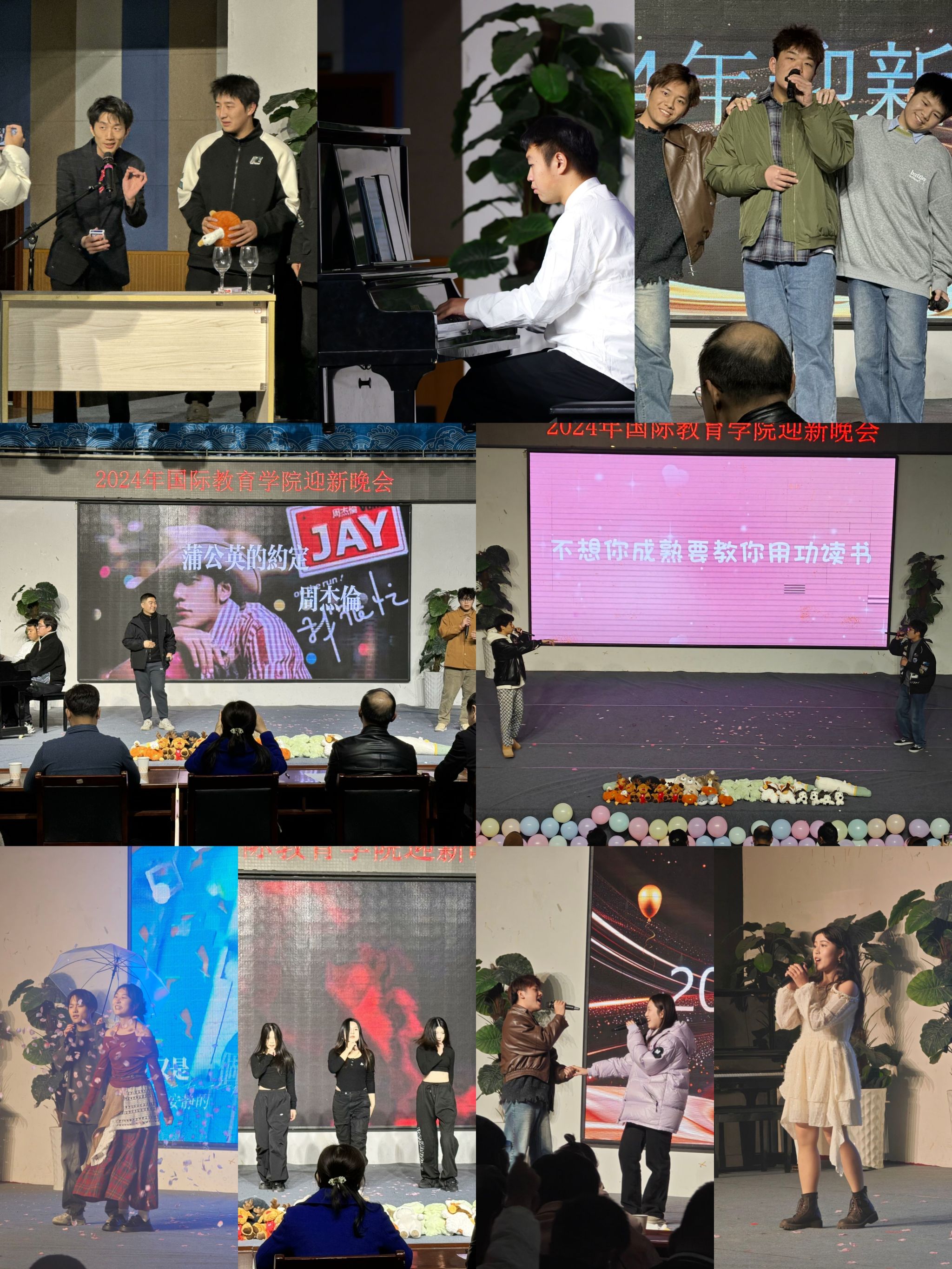 晚会现场气氛热烈,充满了欢声笑语。本次迎新晚会共准备了19个精彩纷呈的节目,涵盖了街舞、歌曲、钢琴演奏、魔术等多个领域,充分展示了师生们的多才多艺和无限创意。在晚会过程中,师生们积极互动,共同分享欢乐时光。这不仅增进了师生之间的了解和友谊,更展现了国际教育学院多元活力与融洽氛围的校园文化。