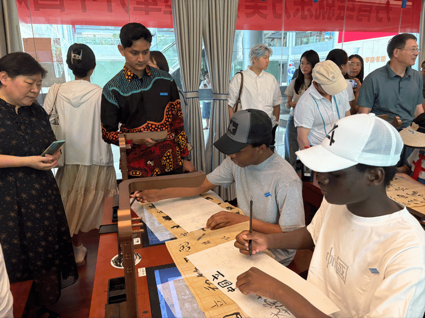 我校来华留学生们体验中国书法学习