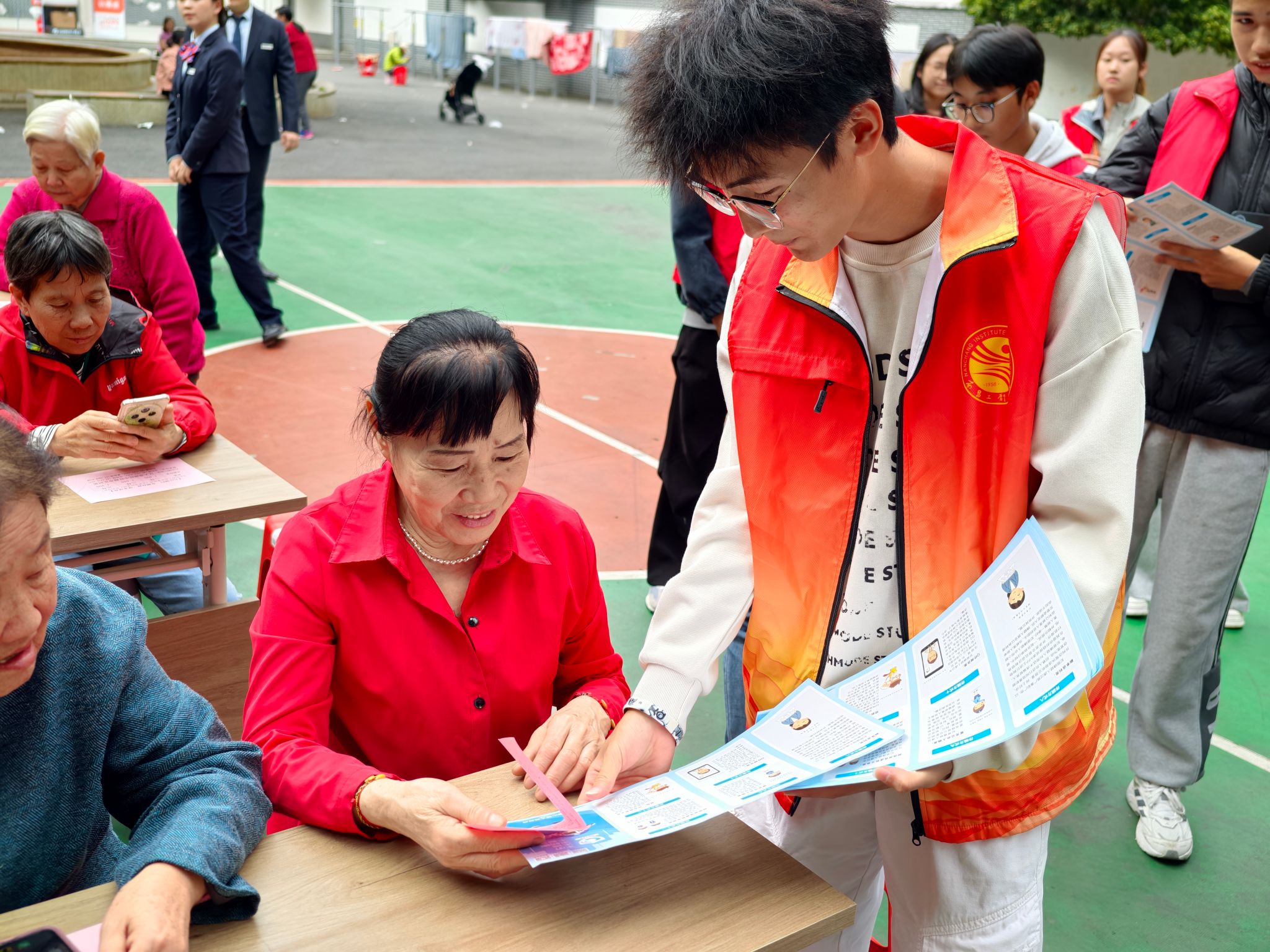 活动现场内容丰富、形式多样。志愿者们开设反诈宣传点,为老人们发放反诈宣传册,通过真实案例为老人剖析常见诈骗手法;在传统美食区,师生们亲手为老人烹制寓意长寿的重阳面,热气腾腾的面条传递着浓浓情谊;趣味问答环节更是欢声不断,老人们踊跃参与反诈知识竞答,在轻松氛围中增长了反诈常识。