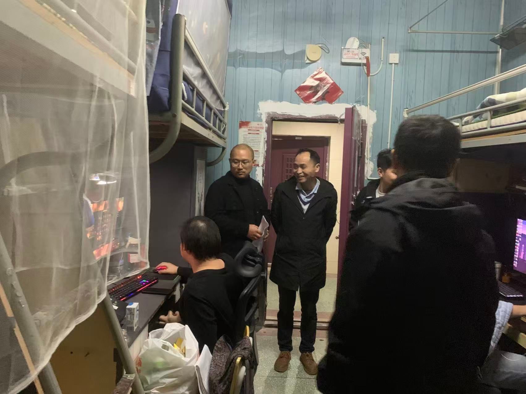 检查工作组深入学生寝室,重点围绕学生夜不归宿、晚归情况进行了核查登记,并对寝室消防安全隐患进行了全面细致的排查。检查人员着重查看了宿舍内用电是否规范、是否存在违规使用大功率电器、私拉乱接电线等现象,确保消防通道畅通、消防设施完好。检查过程中,戴国星与同学们进行了亲切交流,细致关心询问大家近期的学习进展、生活适应情况及实际困难,叮嘱同学们务必牢固树立“安全第一”的意识,严格遵守学校住宿管理规定,特别注意冬季用电、防火安全,做到人走断电,杜绝一切安全隐患;同时勉励同学们要互相关心、互相帮助,营造安全、整洁、和谐、向上的寝室氛围,合理安排作息时间,以饱满的精神状态投入期末阶段的学习与生活。