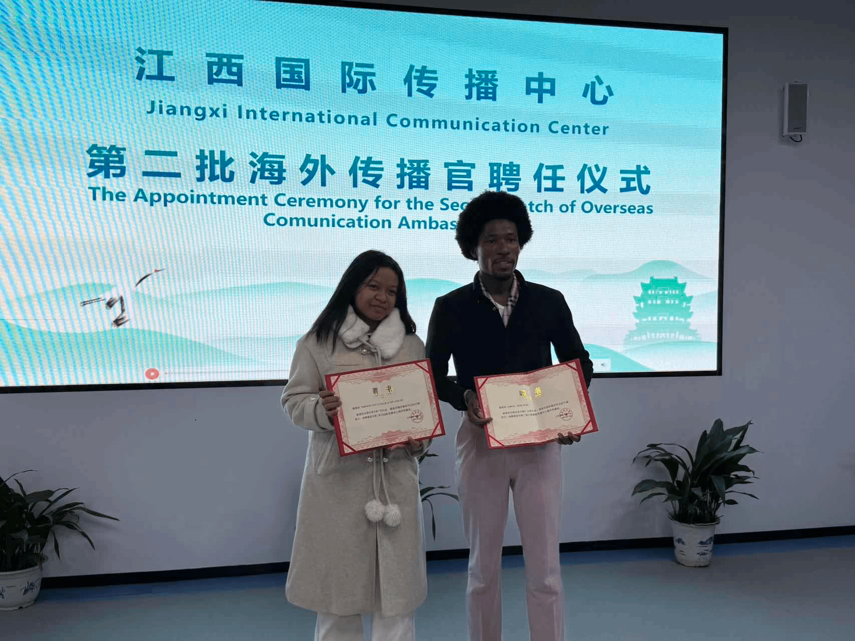 第二批江西国际传播中心海外传播官聘任仪式同步举行。经过综合评选,我校留学生科比凭借在文化传播领域的积极表现与突出能力,成功当选。聘任现场,科比接过聘书后表示、未来他将以传播官的身份,积极向海外讲述画展背后的童真故事与文化魅力,为促进中外青少年友好交流贡献力量。(图/文 黄蓓蓓)