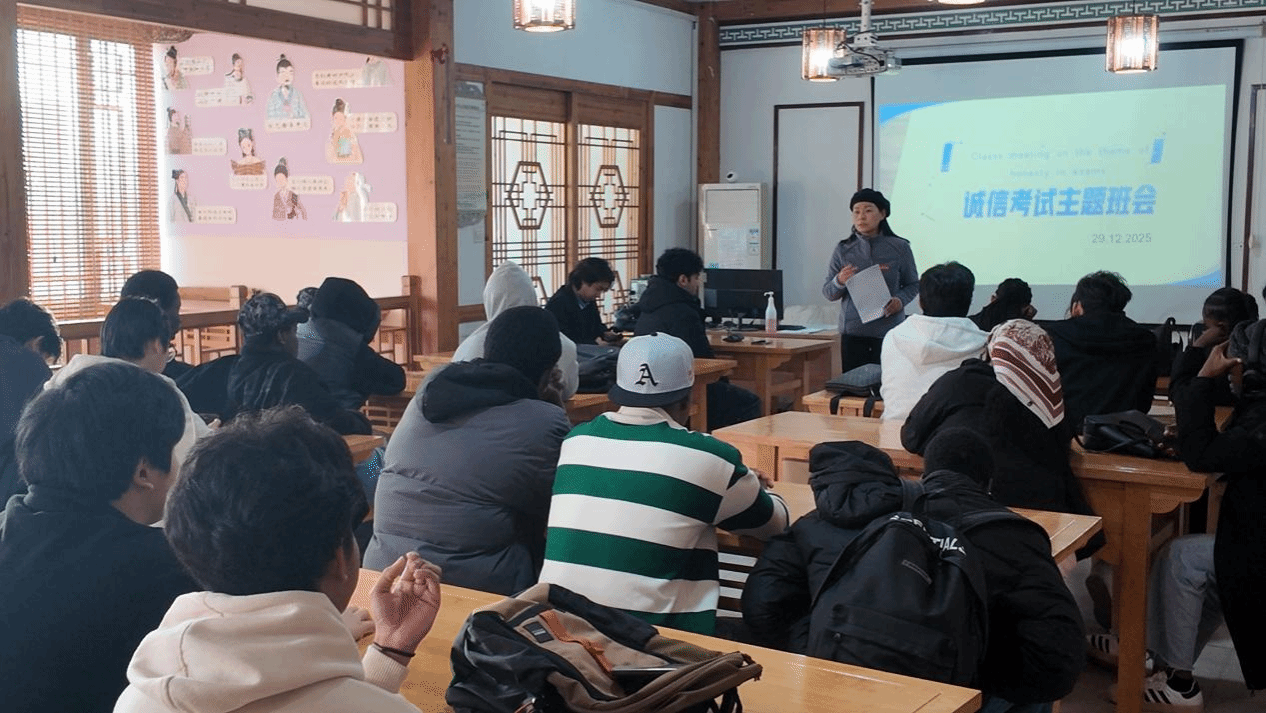 为进一步加强来华留学生学风建设,营造公平公正、诚实守信的考试环境,12 月 29 日,国际教育学院组织开展了来华留学生诚信考试主题班会。本次班会由留学生管理办公室主任徐涛老师主持。