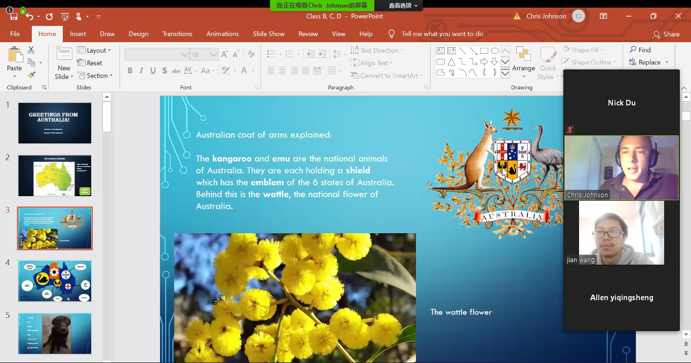 由于疫情因素,口语外教无法及时到岗,加上跨国技术因素和时差因素,给教学组织带来了不小的困难。前期,学生只能通过慕课平台进行自主学习,并结合QQ群签到等方式进行线上学习。为了进一步增强学习效果,经过国际交流与合作处及国际教育学院的通力合作,多次与外教沟通协调,澳大利亚外教Chris以及南非外教Karen通过Zoom视频会议软件顺利开启了线上教学,与学生实时互动、实时交流,有效地提高了学生的学习积极性,整个课堂氛围表现良好。