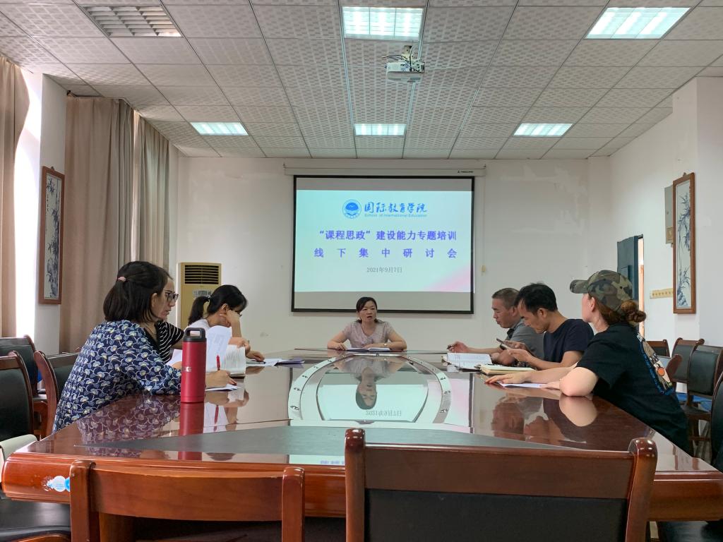 为提高“课程思政”建设能力专题培训效果,国际教育学院于2021年9月7日下午在教学楼北A210会议室召开“课程思政”建设能力专题培训线下集中研讨会。研讨会由教学副院长肖小聪主持,教务管理人员和全体在岗教师参加了会议。