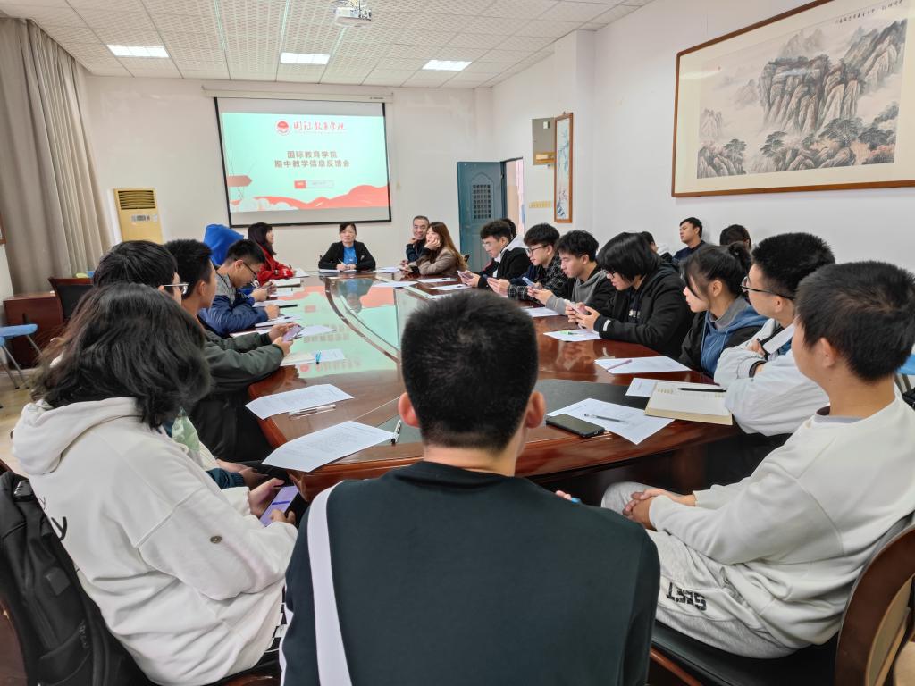 为加强教学过程管理,做好教学质量监控,深入了解教学运行状况,国际教育学院于11月17日中午在北A210召开了本学期教学信息反馈会。参加本次会议的有学院教学副院长肖小聪、各教研室主任、教务办工作人员和各班级学生代表。