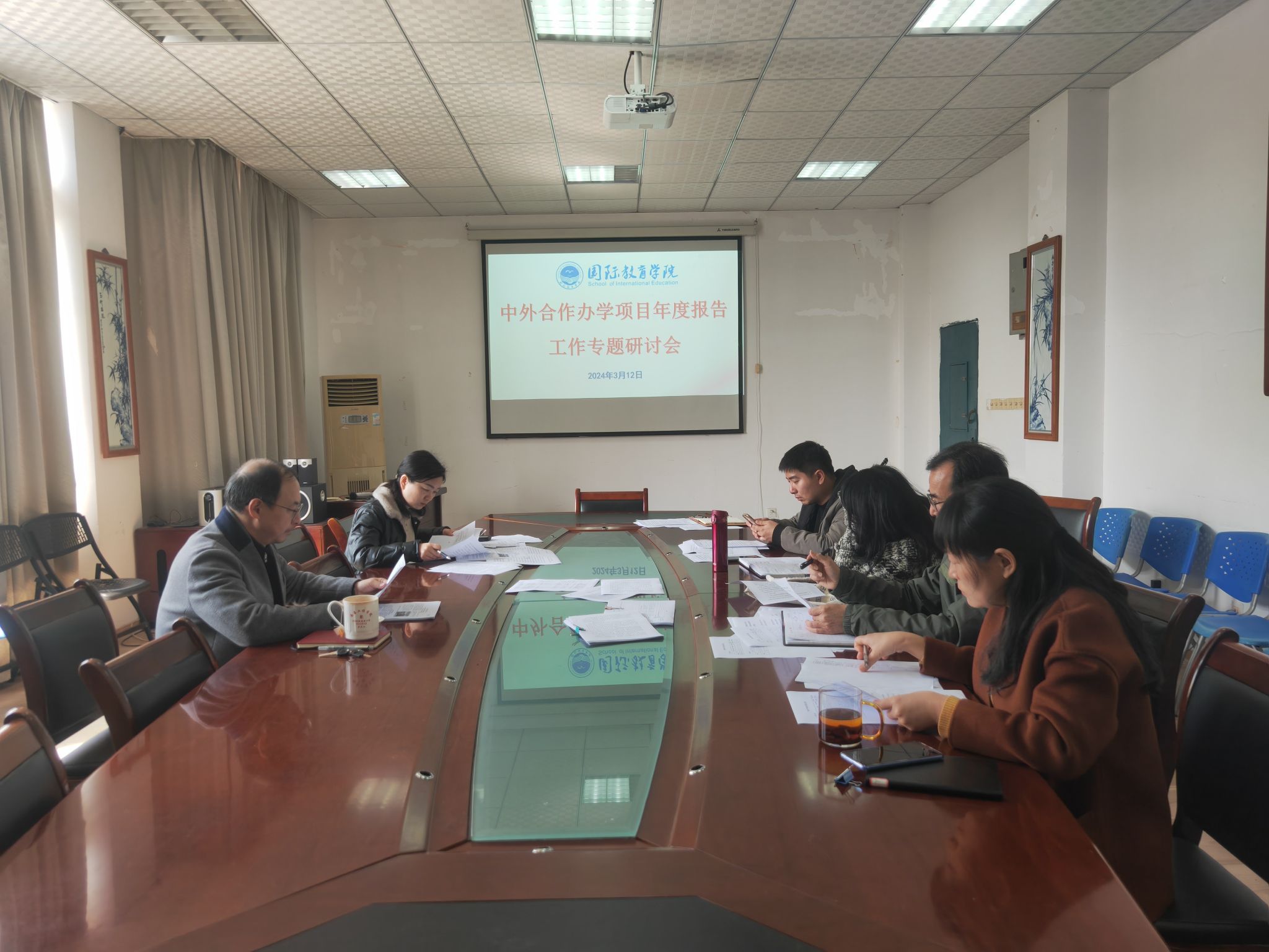 为进一步推进中外合作办学项目的发展,总结年度办学经验,国际教育学院于3月12日召开了中外合作办学年度报告工作专题研讨会。本次研讨会旨在深入分析中外合作办学项目的运行情况,探讨存在的问题,并提出改进措施,为未来的合作办学工作提供有力指导。学院领导、中外合作办学项目负责人、相关教师及工作人员参加了此次会议。