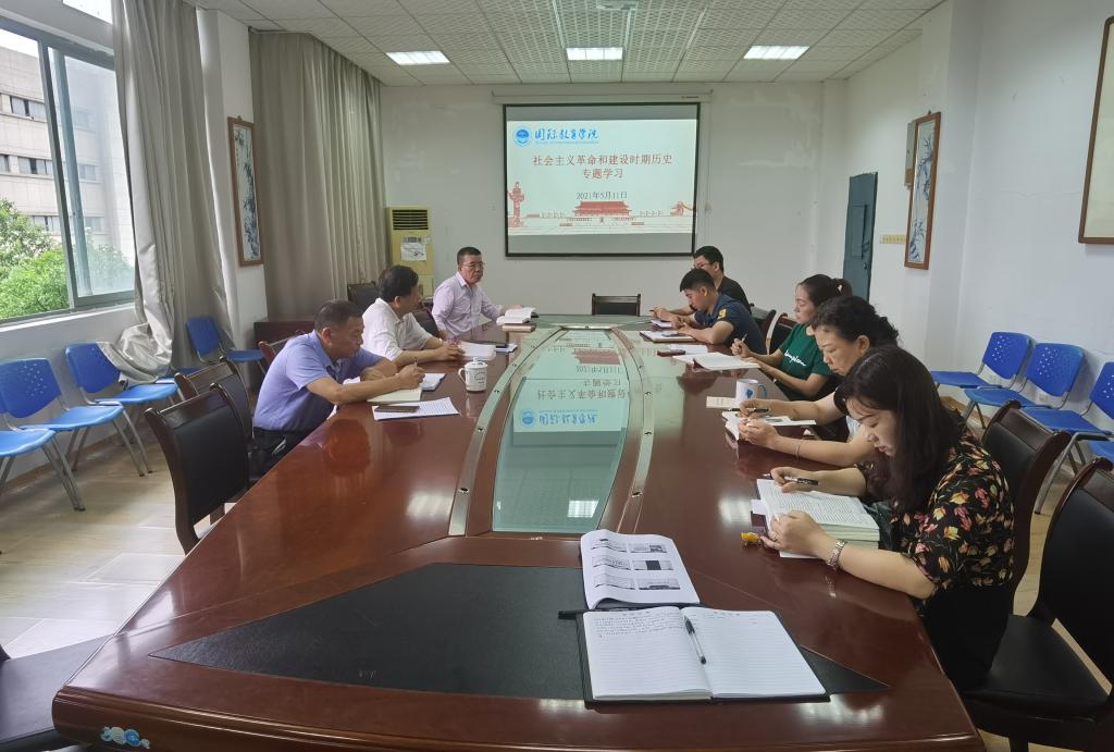 5月11日上午,国际教育学院组织党委理论学习中心组(扩大)学习会,专题学习社会主义革命和建设时期历史。党委书记陈春柏主持,全体党委会员和支部书记参加了学习。