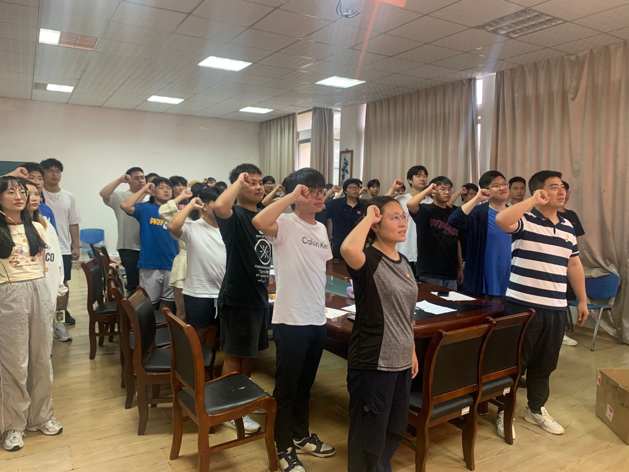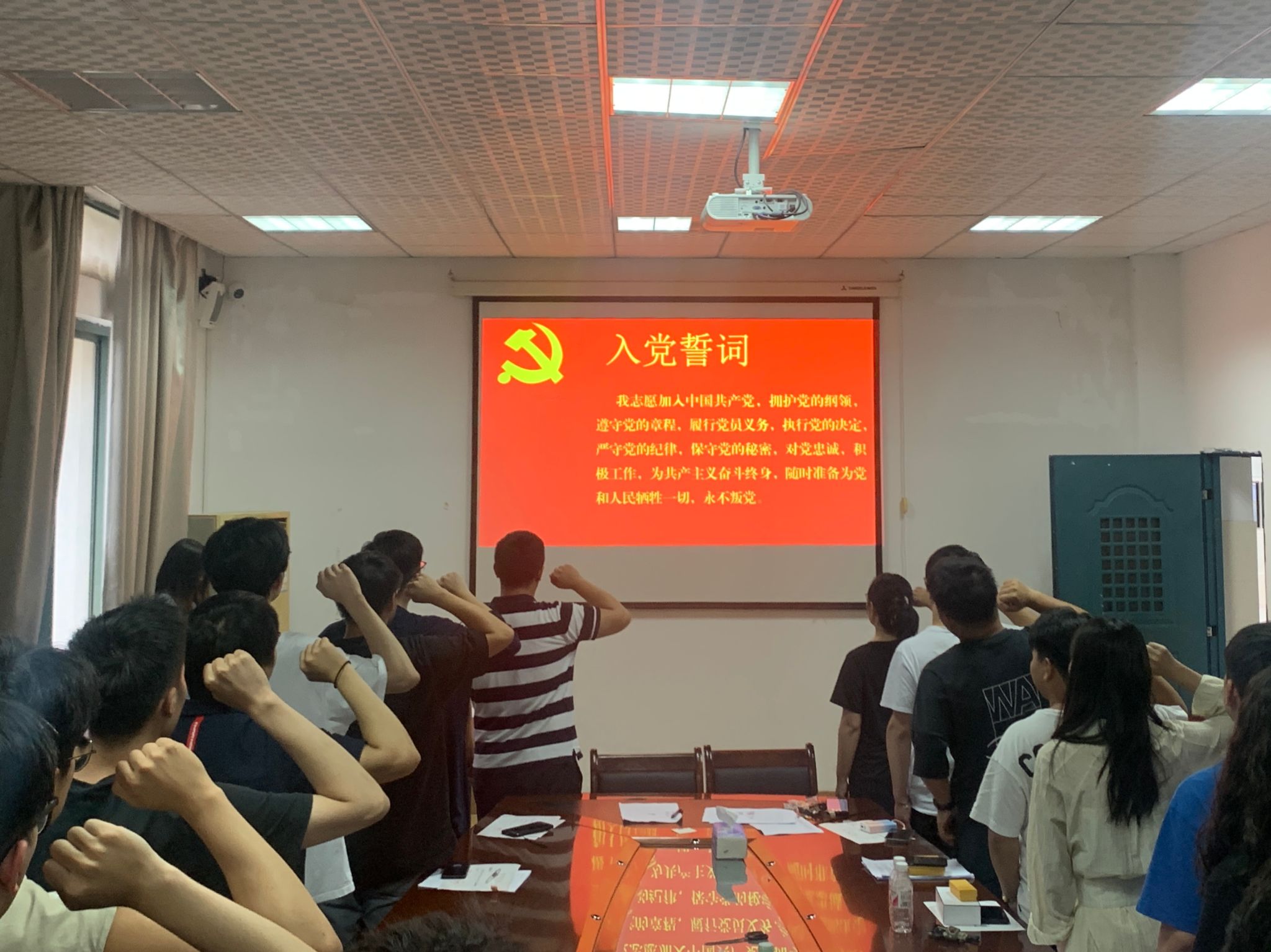 随后,在庄严的党旗下,学生党员们集体起立,高举右手,由学院组织员领誓,齐声重温入党誓词。誓言铿锵有力,表达了学生党员们对党的无限忠诚和坚定信仰。通过重温入党誓词,学生党员们更加深刻地认识到自己的责任和使命,坚定了为党的事业奋斗终身的决心。
