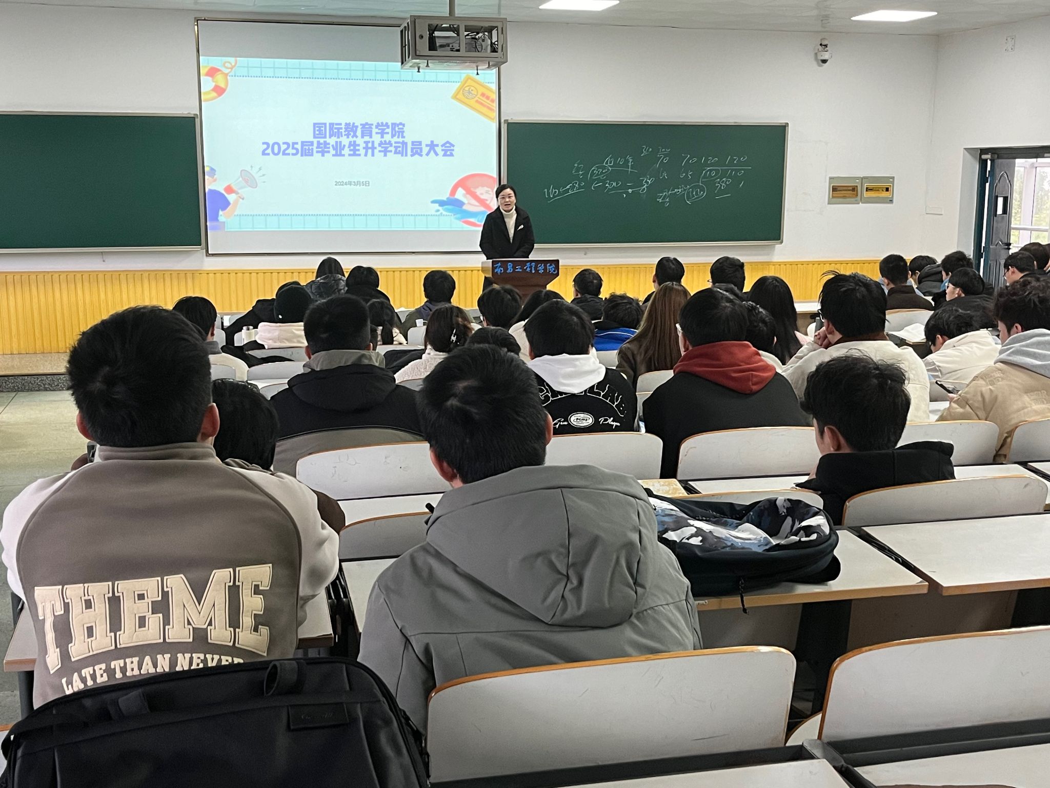 升学就业动员工作是国际教育学院推进升学就业工作的重要步骤和关键环节。学院将持续推动各类围绕2025届毕业生的就业服务工作,为毕业生扫除升学就业盲区,规避升学就业弯路,为毕业生升学就业打下坚实基础。