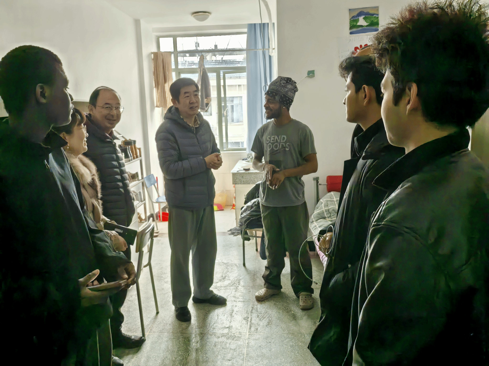 2月23日,为全面了解学生返校情况、加强宿舍安全管理并传递学校关怀,副校长李培生率国际交流与合作处、国际教育学院负责人深入学生宿舍3栋、15栋开展走访慰问活动,与同学们亲切交流,送上新学期的问候与祝福。