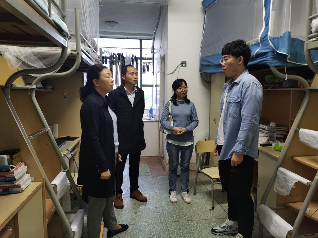 在走访的过程中,老师们详细地了解了每一个宿舍学生的作息情况,入学教育学习情况,提醒同学们尽快适应大学校园生活,调整好状态,合理安排时间,以良好的精神状态投入新学期 的学习生活中。新生中有一些来自北方的同学,赵书记亲切地提醒来自北方的新生南北方气候差异,入冬前做好相应的准备。此外,学院领导对学生宿舍安全、环境卫生、安全设施等情况进行了认真细致的检查,并提出了明确要求,以确保宿舍安全有序、整洁干净,用心营造一个良好的宿舍学习、生活氛围。