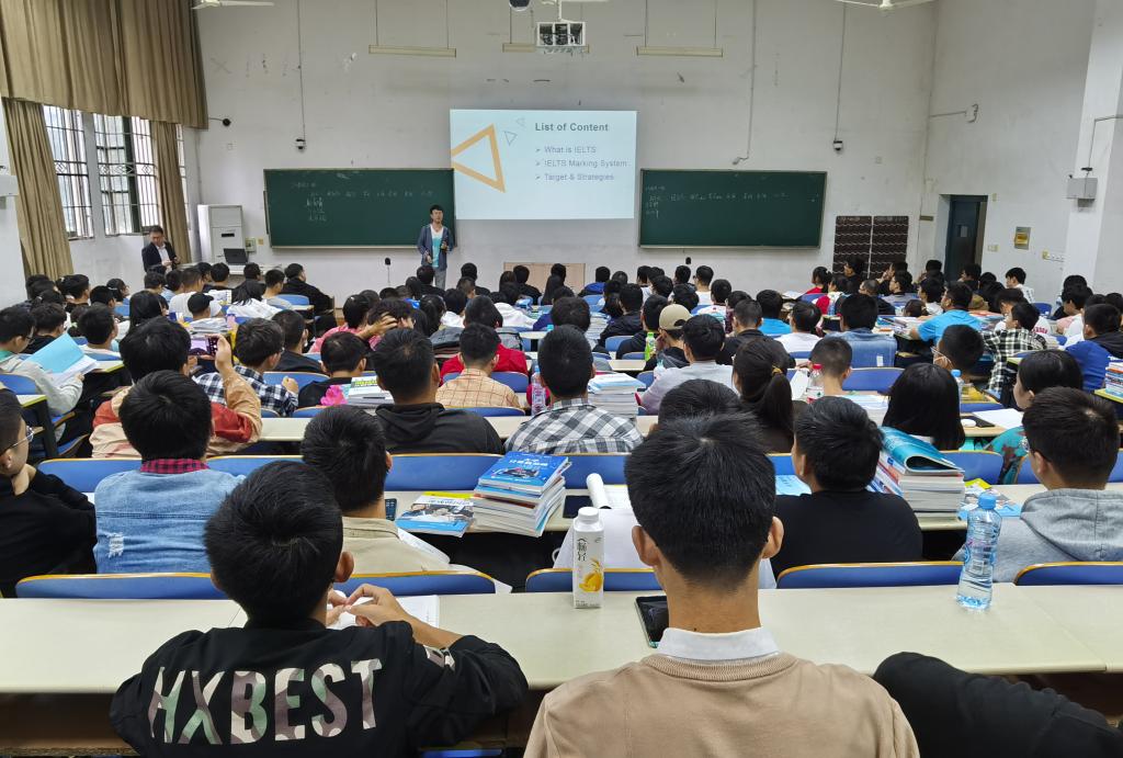 燕兴雅思语言学校有英国读研和工作经历的涂老师首先向同学们详细解读了什么是雅思考试,雅思考试有什么作用,雅思考试的评分体系及应试技巧等。随后,已经获得多所世界排名前50学校读研offer的2017级土木工程的黄子恒同学分享了英语基础不好的自己如何备考雅思、大学学习生活和到国外做志愿者经历等,告诉同学们制定自己的大学规划,丰富自己的学习、工作经历,做更好的自己。最后,张小燕校长就如何做好自己大学学习规划确保将来有机会申请国外名校读研做了详细解读。