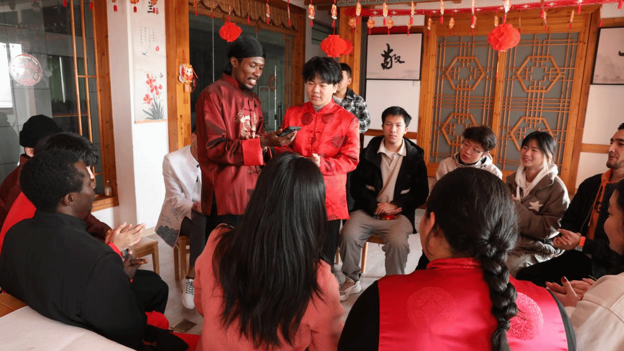 在写对联,剪窗花的活动现场中,留学生们与大家一同感受了中国传统艺术的韵味。此外,还有汉字飞花令和唱中文歌曲等环节,让留学生们在欢声笑语中进一步领略中华文化的深厚底蕴。当然,最令人难忘的莫过于品尝美味的汤圆。在这个喜庆满满的日子里,留学生与同学们一起品尝甜滋滋的汤圆。
